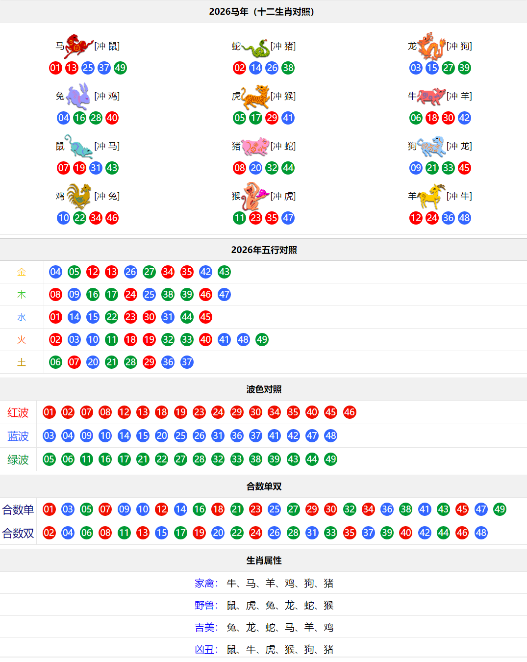 | 单:蛇兔猪鸡牛羊 | 双:龙虎猴马狗鼠 |